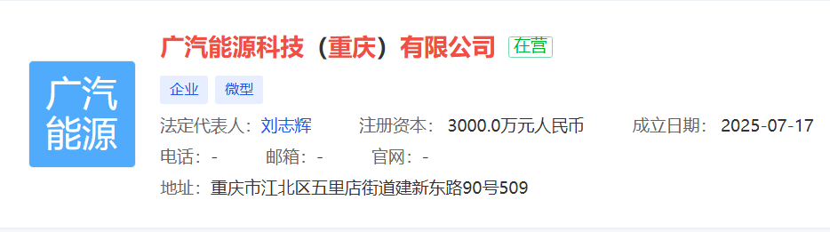 丫頭發(fā)現(xiàn),近日,廣汽能源科技(重慶)有限公司成立,法人為劉志輝,注冊(cè)資本3000萬(wàn)元人民幣。
