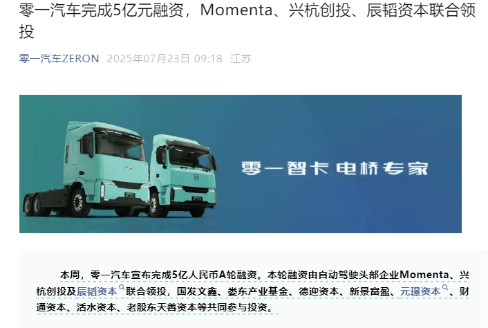 在眾多投資方中,Momenta的再次出手尤為值得關(guān)注。這家自動(dòng)駕駛頭部企業(yè)曾于2024年參與完成零一汽車近億元融資,那也是其首次在自動(dòng)駕駛卡車領(lǐng)域出手;此次再度加碼,足以見得對(duì)零一汽車賽道價(jià)值與發(fā)展?jié)摿Φ纳疃瓤春谩?br />