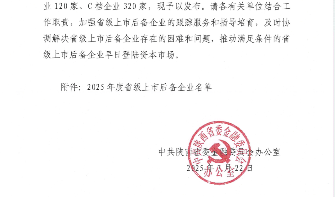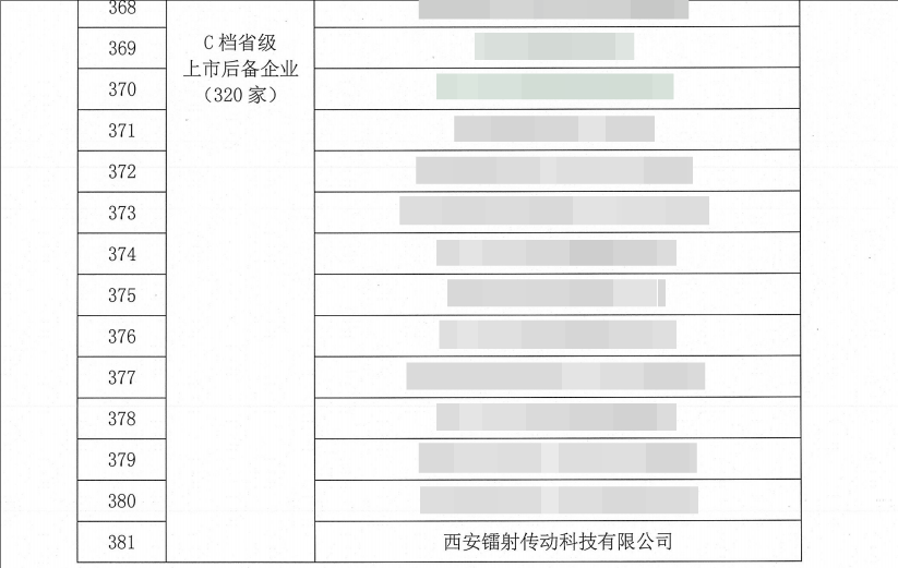 鐳射傳動(dòng)入選2025年度陜西省省級(jí)上市后備企業(yè)名單