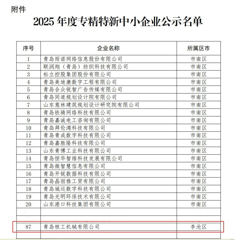 近日,青島核工機械有限公司成功獲批2024年度李滄區“齒輪傳動技術開發重點實驗室”,并再度入選2025年度“專精特新”中小企業名錄,標志著企業在高端裝備制造領域的綜合實力再上新臺階。