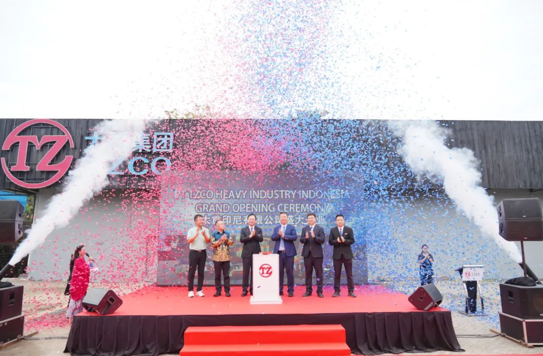 “3、2、1……”在全場的期待中,領導嘉賓共同按下啟動鍵,大屏幕華麗展開,“太重印尼有限公司盛大開業”字樣振奮人心。與此同時,象征太重品牌的紅藍配色禮花噴薄而出,在空中交織飛舞,熱烈昂揚的氣氛被推向最高潮。