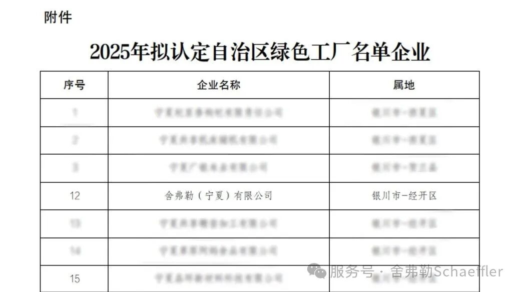 日前,寧夏回族自治區(qū)工信廳公布了2025年擬認(rèn)定自治區(qū)綠色工廠企業(yè)名單,舍弗勒銀川生產(chǎn)基地榜上有名,榮獲“自治區(qū)綠色工廠”稱號(hào)。這充分說(shuō)明銀川基地堅(jiān)持綠色低碳發(fā)展道路,認(rèn)可了其在節(jié)能環(huán)保、資源利用、綠色管理等方面取得的顯著成果。