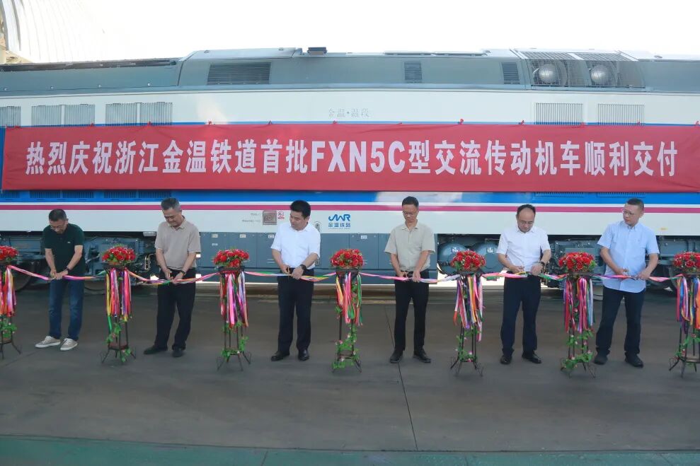 8月29日,中車戚墅堰公司順利向浙江金溫鐵道開發有限公司交付首批復興N5C機車,并舉行交付儀式。浙江金溫鐵道開發有限公司黨委副書記、總經理陳利民,中車戚墅堰公司黨委書記、董事長徐世保,副總經理仲懷清等領導出席儀式。