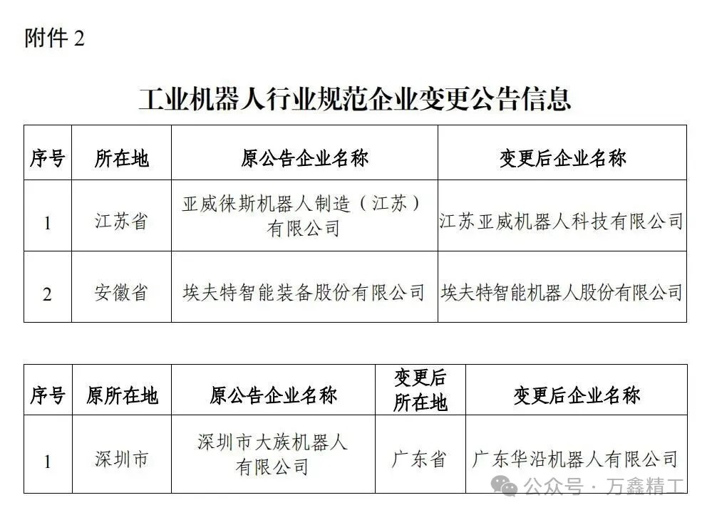 近日,工業和信息化部公示符合《工業機器人行業規范條件(2024版)》的企業名單(第二批),我省的萬鑫精工(湖南)股份有限公司擬入選。具體公示內容和名單如下: