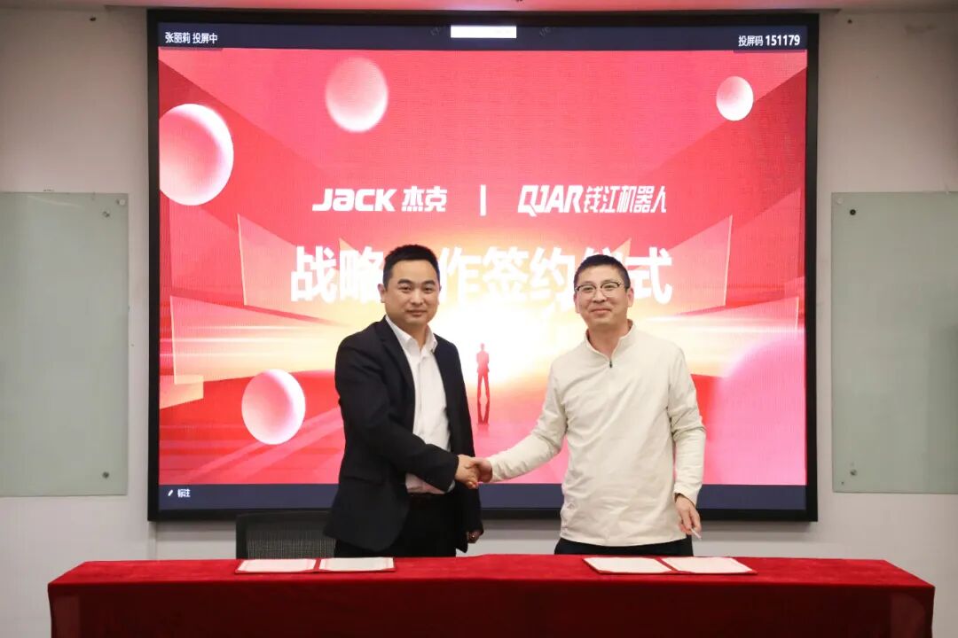 11月19日,杰克科技與浙江錢(qián)江機(jī)器人有限公司(以下簡(jiǎn)稱(chēng)“錢(qián)江機(jī)器人”)舉行戰(zhàn)略合作簽約儀式。