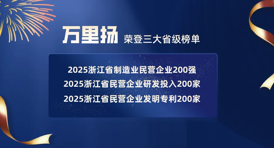 近日,浙江省工商聯與浙商總會聯合發布了浙江省民營企業系列權威榜單,萬里揚在多維度評選中脫穎而出,榮登“2025浙江省制造業民營企業200強”“2025浙江省民營企業研發投入200家”“2025浙江省民營企業發明專利200家”三大榜單。