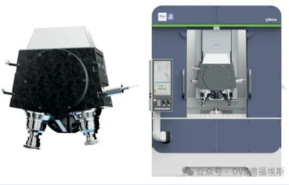 DUO 雙刀頭設計擁有兩個動力刀具主軸,因此能夠同時裝夾兩把刮齒刀具。在生產中,pSkive的兩把刮齒刀可以快速切換,從而實現粗加工和精加工的快速交替,大大提高了生產效率,同時降低刀具成本并保護了精加工刀具壽命。
