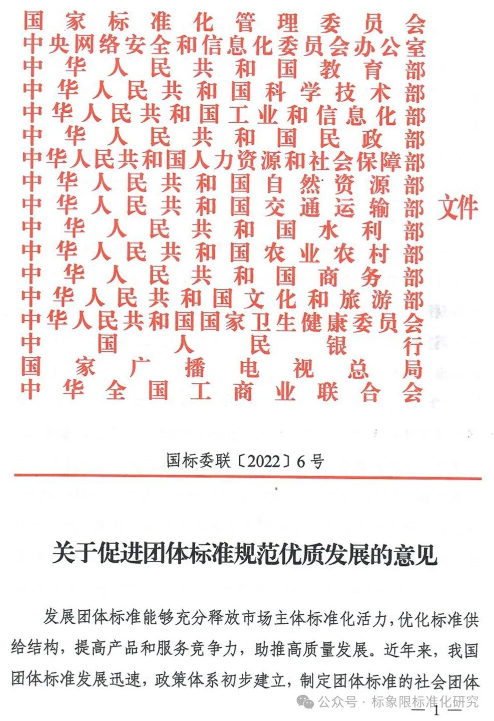 為貫徹落實《國家標準化發展綱要》,規范團體標準化工作,促進團體標準優質發展,經國務院標準化協調推進部際聯席會議全體會議審議通過,國家標準化管理委員會等十七部門聯合印發了《關于促進團體標準規范優質發展的意見》。