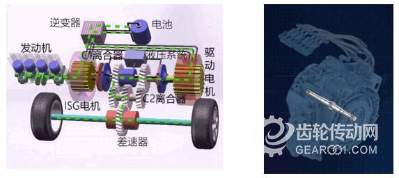 這個雙離合器不是DCT的雙離合器,而是兩個離合器——管理ISG電機和發(fā)動機接入/斷開的C1離合器,以及管理驅(qū)動電機接入/斷開的C2離合器。