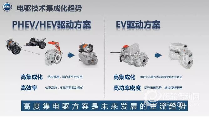 就PHEV/HEV來說,我們認(rèn)為趨勢是高集成化和高效率。今后車輛留給前艙的空間會越來越小,電力電子元件的存在將導(dǎo)致多出很多的支架、連接線等零件。如果將其集成到變速箱內(nèi),將節(jié)省很多的空間。隨著今后半導(dǎo)體元器件的發(fā)展,更是可能直接集成到控制器內(nèi)部。上汽一貫提倡整套系統(tǒng)的高效率,用最少的能源實現(xiàn)最大的里程。