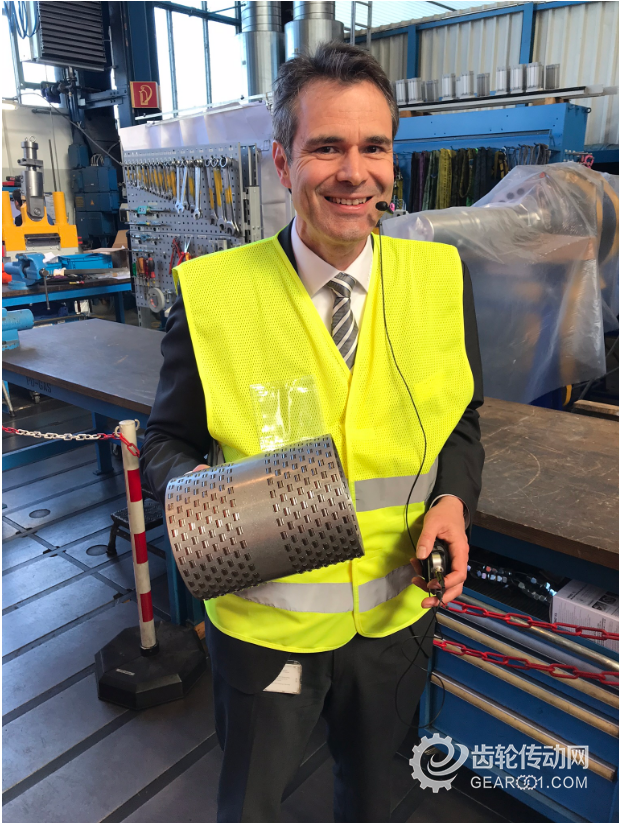 圖3: 舒勒電動(dòng)汽車相關(guān)業(yè)務(wù)負(fù)責(zé)人 Markus Roever先生 在展示內(nèi)部有上千個(gè)輥?zhàn)拥幕瑝K導(dǎo)軌。