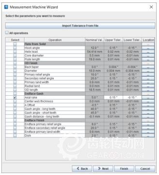 ToolRoom測(cè)量向?qū)窃O(shè)置ANCA-ZOLLER測(cè)量反饋系統(tǒng)最簡(jiǎn)單的方法。它指導(dǎo)用戶瀏覽給定刀具的幾何參數(shù)列表。用戶可以輕松選擇可測(cè)操作并實(shí)施補(bǔ)償。