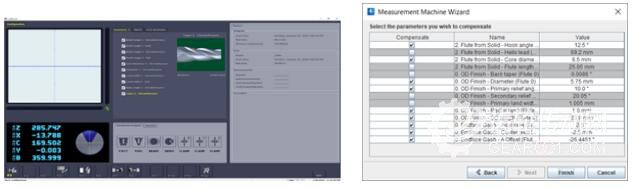 傳統(tǒng)的刀具測(cè)量過(guò)程需要先磨削刀具,然后手動(dòng)將其帶到測(cè)量機(jī)器上檢驗(yàn)設(shè)計(jì)參數(shù),例如,螺旋、外徑和傾角。下一步是刀具補(bǔ)償,該步驟是確保成品與原始繪圖參數(shù)匹配的關(guān)鍵。若手動(dòng)執(zhí)行這些操作,則會(huì)存在因數(shù)據(jù)錯(cuò)誤而導(dǎo)致的研磨浪費(fèi)的風(fēng)險(xiǎn)。