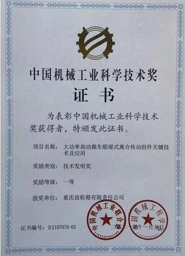 近日,中國機(jī)械工業(yè)聯(lián)合會公布2021年度中國機(jī)械工業(yè)科學(xué)技術(shù)獎獲獎名單,中國船舶重齒公司參與完成的“大功率高動載車船濕式離合傳動組件關(guān)鍵技術(shù)及應(yīng)用”項目榮獲中國機(jī)械工業(yè)科學(xué)技術(shù)獎技術(shù)發(fā)明類一等獎,在全國僅十一位一等獎中斬獲一席。