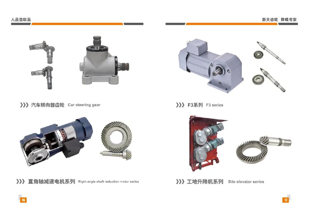 新天20年來專注高端品質的錐齒輪,立行為客戶做好優秀的供應鏈管家;為客戶提供0.5mm-10mm的螺旋錐齒輪、準雙曲面齒輪和零度螺旋角錐齒輪(應用于汽車后橋、輕軌列車、沙灘車、電動叉車、電動工具、K系列減速機、精密行星減速機、中空直角減速機、F3準雙曲面減速機、KM系列準雙曲面減速機、升降機、機器人、舷外機、動力頭、航空航天航海、軍工等行業)的同時,還為客戶提供基于品質無憂的整體降噪方案和基于快速交付的零庫存供貨方案。
