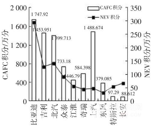 雙積分考核實(shí)施后,單純降低企業(yè)平均燃油消耗量已不能滿足要求。在 NEV 積分考核的逼迫下,企業(yè)必須自主生產(chǎn)技術(shù)含量高的新能源汽車才能贏取較高的 NEV 積分,另外生產(chǎn)新能源汽車對于降低 CAFC 值也可產(chǎn)生很大作用。