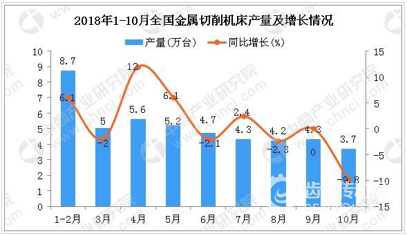2018年10月全國金屬切削機床累計產(chǎn)量為42.1萬臺,同比增長0.7%