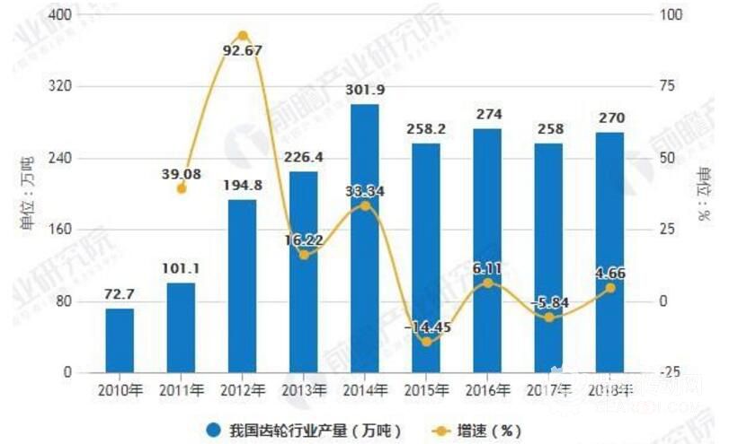 我國齒輪行業產量增速波動較為明顯