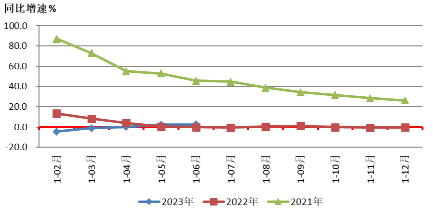 3.存貨增幅回落2023年6月,協會重點聯系企業存貨同比增長6.2%,增幅較3月末回落4.9個百分點。其中,原材料同比增長0.1%,產成品同比增長2.6%。