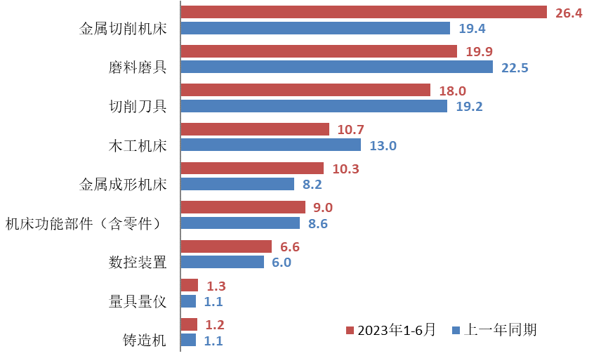 2023年1-6月,金屬加工機床出口額36.7億美元,同比增長33.0%。其中,金屬切削機床出口額26.4億美元,同比增長36.2%;金屬成形機床出口額10.3億美元,同比增長25.5%。