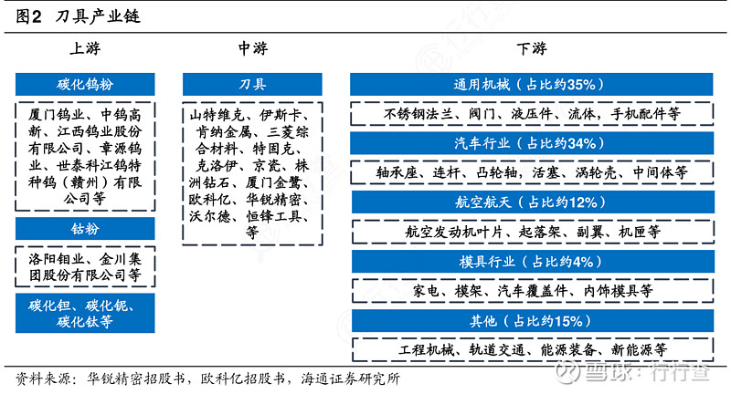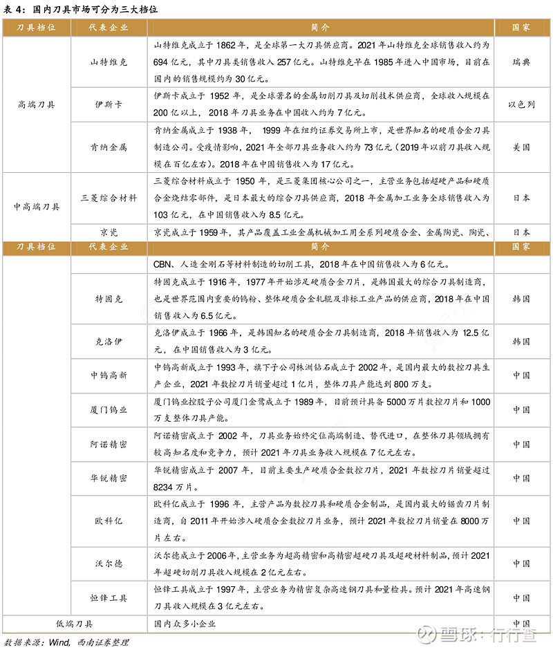 1)高端刀具:國內市場份額約為20%,供應者主要為歐美品牌,典型企業包括山特維克、肯納金屬、伊斯卡等,國內品牌中鎢高新(株洲鉆石)、廈門鎢業(廈門金鷺)正在向高端刀具市場發力;