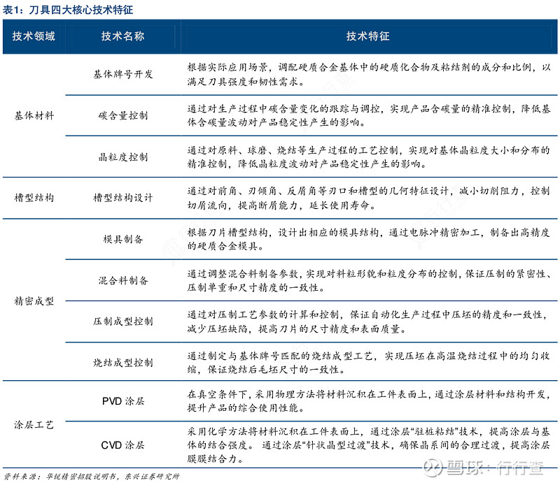 刀具制造重點在于四大核心技術。根據華銳精密招股說明書披露,刀具制造具有較高的技術壁壘,壁壘集中在設計和工藝環節,主要包括四大核心技術:基體材料、槽型結構、精密成型和涂層工藝。在制造環節中,生產設備中的非標定制化設備均采用國產設備,而所采用的進口設備均為標準化設備,國產設備可以替代,不存在進口依賴問題。