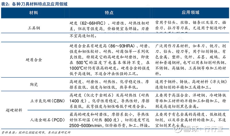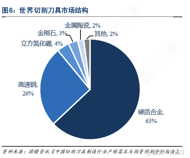 刀具的性能與刀具材料密切相關。目前用于刀具制造的材料主要有高速工具鋼、硬質合金、陶瓷和超硬材料(立方氮化硼CBN和人造金剛石PCD),其中硬質合金材料全球占比超過60%,國內占比超過50%。