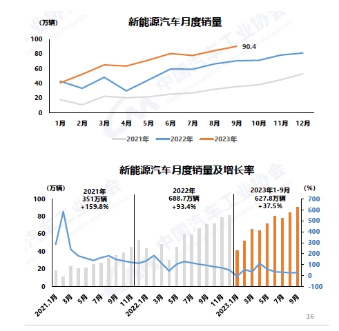 1-9月,新能源汽車產銷累計完成631.3萬輛和627.8萬輛,同比分別增長33.7%和37.5%,市場占有率達到29.8%。在新能源汽車主要品種中,與上年同期相比,三大類汽車產銷均呈兩位數增長。