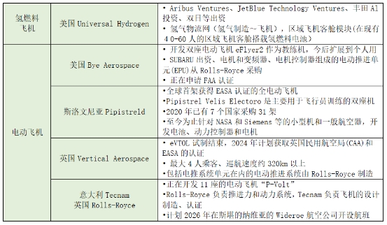 此外,在國際民航組織排放法規(guī)日趨嚴(yán)格和航空公司競爭加劇的背景下,航空公司正在尋求引進更清潔、更省油的電動飛機和氫飛機。如果開發(fā)取得進展,將需要開發(fā)和制造電氣系統(tǒng)、液化氫罐、氫發(fā)動機燃燒室等相關(guān)零部件,這將是機床制造商捕捉新加工需求的機會。近期,以歐美為主的風(fēng)險投資公司紛紛進入電動飛機和氫燃料飛機的研發(fā)領(lǐng)域,備受關(guān)注(表1)。例如,美國的Universal Hydrogen正在研發(fā)和演示一款40至60座的氫支線飛機,而斯洛文尼亞的Pipistreld則研發(fā)了一款兩人座全電動小型飛機,并首次獲得EASA型號批準(zhǔn)。然而,除了制造質(zhì)量要求高以外,飛機行業(yè)還需要符合認(rèn)證要求以及面向航空公司的銷售和服務(wù)網(wǎng)絡(luò),并且通常具有較高的進入壁壘。因此,上述企業(yè)正在與空中客車、波音、通用電氣和勞斯萊斯等主要飛機和發(fā)動機制造商共同開發(fā),以彌補不足。鑒于這些因素,機床制造商繼續(xù)關(guān)注主要飛機和發(fā)動機制造商及其供應(yīng)商將是有效的。