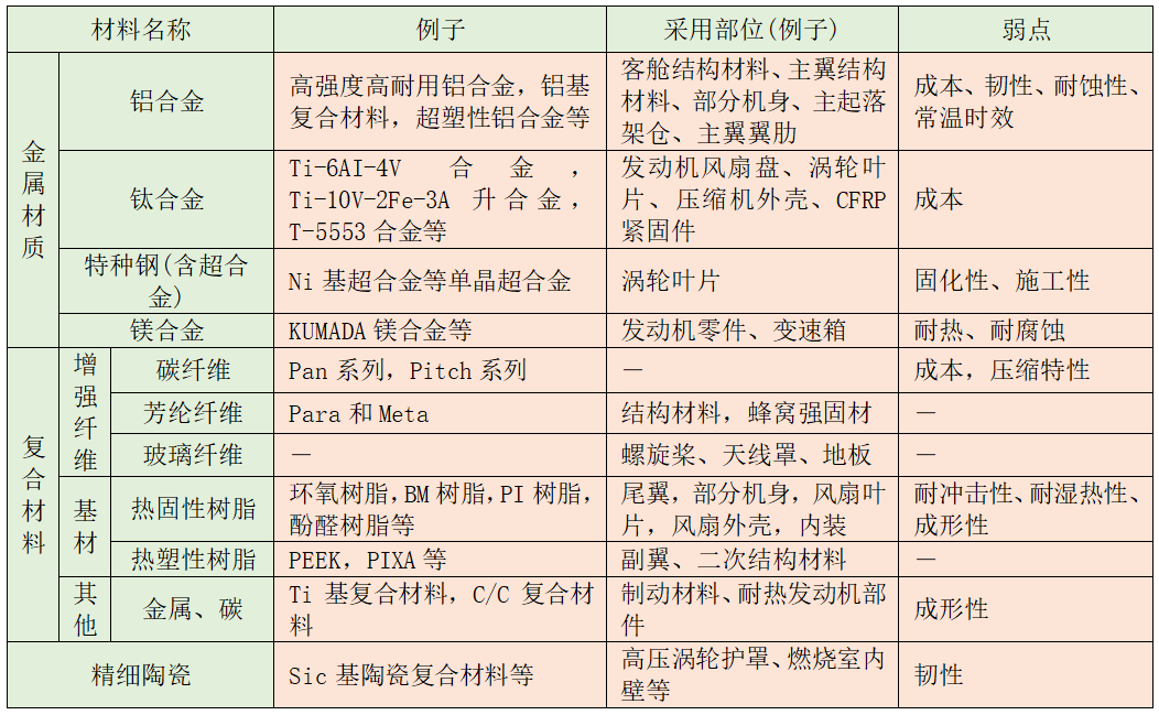 飛機和發(fā)動機制造商根據(jù)飛機和發(fā)動機的整體安全性、機艙舒適性、輕量化、成本、可維護性和可成形性等因素來確定各個部件的材料。