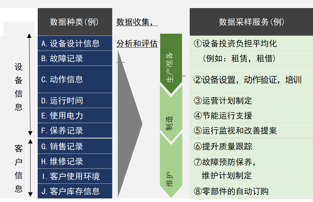 ②加強工程建議。例如,提出工程方案,負(fù)責(zé)用戶生產(chǎn)線的設(shè)計、制作、安裝等。機床制造商加強與加工相關(guān)的工程建議將很重要,不僅包括他們自己的設(shè)備,還包括其他公司制造的外圍設(shè)備。此外,在提出工程提案時,可以通過創(chuàng)建各種利用數(shù)據(jù)的服務(wù)來提出更高效和有效的方案。例如,在用戶企業(yè)生產(chǎn)準(zhǔn)備過程中的設(shè)備啟動、運行保障、培訓(xùn)服務(wù)等服務(wù),以及在制造執(zhí)行過程中的全線運行監(jiān)控、節(jié)能運行支持等服務(wù),預(yù)防性維護,測量結(jié)果的處理控制等等。還可以設(shè)想在用戶公司的多個生產(chǎn)過程中創(chuàng)建各種服務(wù),例如在維護過程中提供反饋以支持質(zhì)量保證和改進的服務(wù)等,并向用戶推薦出合適的服務(wù)公司(圖3)。