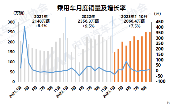 1-10月,乘用車產銷累計完成2073.1萬輛和2066.4萬輛,同比分別增長6%和7.5%。在乘用車主要品種中,與上年同期相比,運動型多用途乘用車(SUV)和多功能乘用車(MPV)產銷明顯增長,基本型乘用車(轎車)產量微降、銷量微增,交叉型乘用車產銷呈兩位數下降。