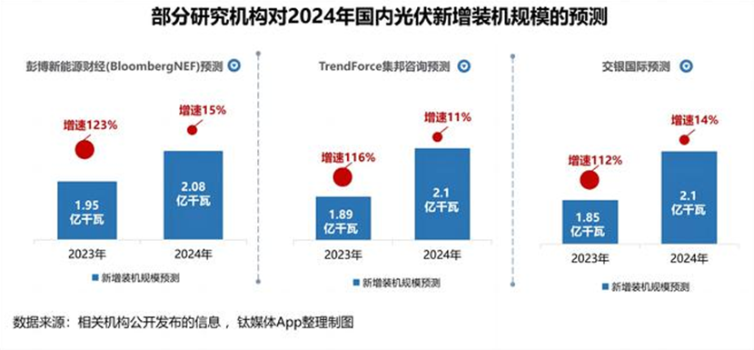 圖說:部分研究機構對2024年國內光伏新增裝機規模的預測