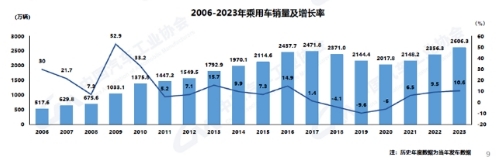 中汽協數據顯示,我國汽車產銷總量連續15年穩居全球第一。2009年,中國汽車產銷量首次雙突破1000萬輛大關,成為世界汽車產銷第一大國。2013年突破2000萬輛,2017年產銷量達到階段峰值,隨后市場連續三年下降,進入轉型調整期,2021年結束“三連降”開始回升。2023年,汽車產銷累計完成3016.1萬輛和3009.4萬輛,同比分別增長11.6%和12%。