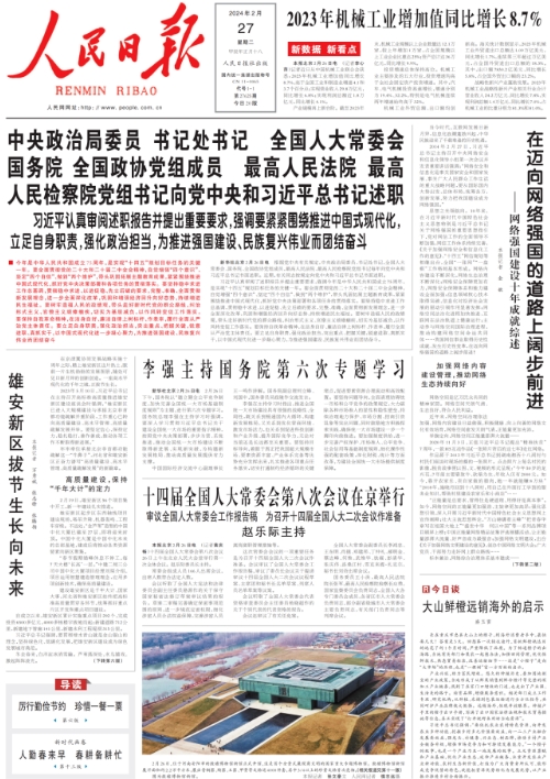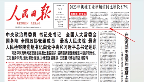 近日,人民日報頭版報道了2023年機械工業發展數據。報道顯示:2023年機械工業增加值同比增長8.7%,高于全國工業和制造業增速4.1和3.7個百分點;實現營業收入29.8萬億元,同比增長6.8%;實現利潤總額近1.8萬億元,同比增長4.1%。