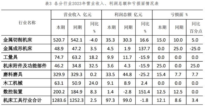 2023年度,機床工具行業受國際環境、地緣政治及下游裝備投資乏力等因素影響,整體面臨較大的經營壓力。行業上市公司部分經濟運行指標呈現下行,面臨著盈利能力下降、賬款回收難度大、訂單減少等壓力。但對比主要指標的同比變化情況,行業上市公司運行質量明顯好于行業整體水平,仍然是行業的優質企業群體。