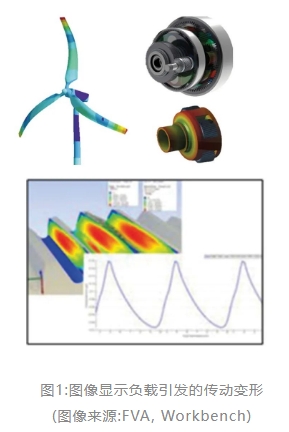 所有這些都會(huì)導(dǎo)致傳動(dòng)組件出現(xiàn)變形,力矩出現(xiàn)波動(dòng)。而波動(dòng)的力矩在瞬間內(nèi)會(huì)遠(yuǎn)超力矩的額定值。圖1展示了負(fù)載導(dǎo)致的轉(zhuǎn)子、塔體和傳動(dòng)的變形。