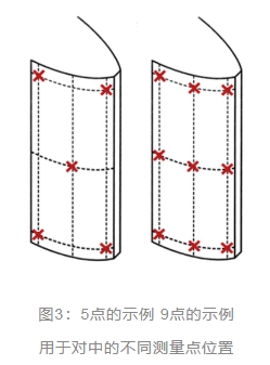 圖4的左上部分對(duì)以單點(diǎn)測(cè)量為例進(jìn)行了展示。當(dāng)進(jìn)行多點(diǎn)測(cè)量時(shí),余量的位置不同,兩個(gè)測(cè)量點(diǎn)之間是傾斜線段,而三個(gè)測(cè)量點(diǎn)之間是拋物線。