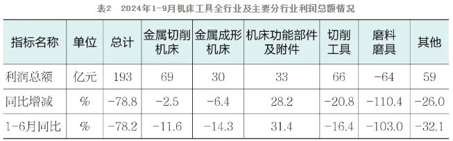機床工具全行業(yè)及主要分行業(yè)的利潤總額情況,詳見表2。