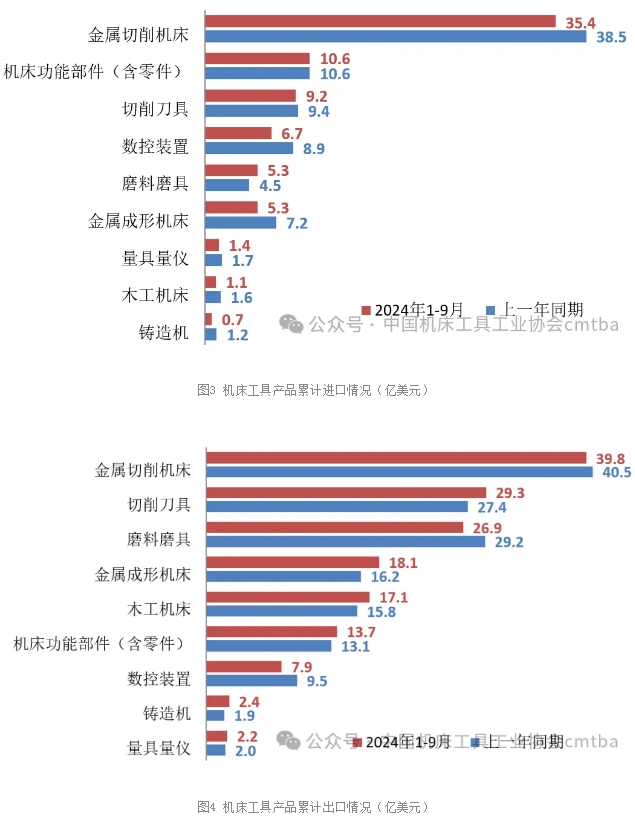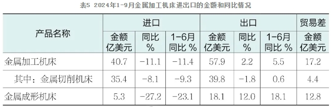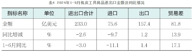 2024年1-9月,中國機床工具行業(yè)進出口仍保持總體小幅下降,具有進口下降、出口增長、貿(mào)易順差擴大的特點。與1-6月相比較,各項指標的同比變動幅度都有所收窄。