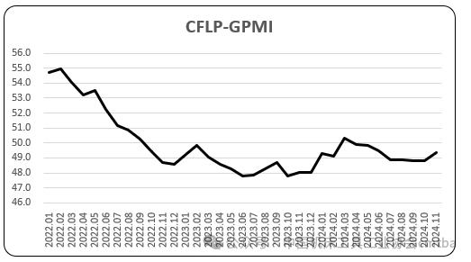 2024年11月份,非洲制造業PMI為49.2%,較上月下降0.2個百分點,連續2個月運行在50%的榮枯線以下。從主要國家來看,南非制造業PMI為48.1%,環比下降4.5個百分點,在連續2個月運行在52%以上后明顯回落,顯示南非制造業恢復勢頭明顯放緩,也是非洲制造業PMI下降的主因。埃及制造業PMI和尼日利亞制造業PMI較上月有不同程度上升,但指數均在50%以下。