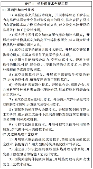 圍繞關鍵基礎件的性能提升,突破 70 HRC 以上超高硬度齒輪精密熱處理技術、關鍵構件真空離子表層硬化技術、特大型汽輪機低壓轉子組織分布調控技術、特大型支撐輥差溫熱處理和應力控制技術、大型高強輕合金結構件成型?熱處理形性調控技術、航空復雜鈦合金、高溫合金件真空離子滲氮技術、四代齒輪軸承鋼精密復合化學熱處理技術、大型復雜先進高合金鋼制件真空滲碳高壓氣淬技術、鈦合金及高溫合金整體盤件梯度熱處理技術、鈦合金抗氫脆耐磨防腐一體 PVD 強化技術、航空復雜薄壁焊接組件及長軸類零件氣淬變形精密控制技術、復雜精密構件多場復合強化技術、4 米級以上運載火箭貯箱主要結構件成型熱處理匹配技術、可重復運載火箭關鍵結構件重復發射極端工況下基體組織結構及表面功能層體系、空間領域導電滑環貴金屬關鍵構件組織結構及服役性能調控技術等。開展水?空交替控時淬火冷卻技術、真空高壓氣淬技術在新能源大型構件的廣泛應用。