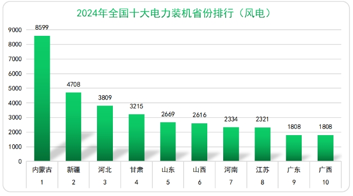 2024全國十大風電裝機省份排名公布,內蒙古、新疆、河北位居前三!
