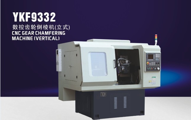 YKF9332型數控齒輪倒棱機替代以往傳統半自動倒棱的基礎上自主研發的數控機床。機床分立式、臥式兩種,采用全封閉防護裝置。工件分度和進給運動采用三軸數控聯動差補原理。三個數控軸分為X\Y\Z軸,X、Y為兩個刀具進給軸,Z軸即工件分度軸。在工件連續旋轉的同時,X、Y、Z軸由程序的控制沿著齒形進行齒輪雙面同時切削運動來實現齒輪的倒棱。