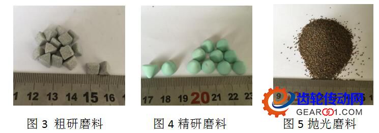 首先將齒輪放入裝有陶瓷磨料DBS6/6見圖3所示的缸桶內,進行最初的粗研磨,使齒輪表面的粗糙度降低到Ra0.08-0.1um左右。