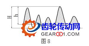 行星輪系傳動齒輪磨齒之后的表面從微觀的角度分析觀察,其表面仍由圖8 所示的波峰和波谷組成,通過齒表面的研磨和拋光可以消除尺寸為h的波峰,減小波峰和波谷的高度差。Δ=H-h從而使齒輪副在嚙合中,接觸的表面積增大,使齒輪的承載能力得到提高,更進一步有利于齒輪在承載中實現均載,有效的提高了齒輪的使用壽命。