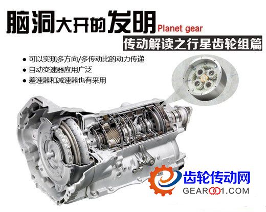 其實我們展示一下行星齒輪組的結構大家就明白了,它的結構就和太陽系一樣,中間有太陽,旁邊是幾大行星,行星自己旋轉同時繞著太陽公轉,由于齒數的原因,會產生變速作用,達到變速/減速的目的。實際上,出于天文/歷法的需要,行星齒輪也最早出現在天文儀器和鐘表上,所以歷史已經非常悠久。