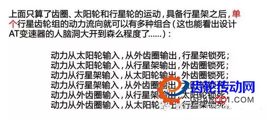 行星齒輪組名稱的得來與星系有很大關系,組成行星齒輪組的齒輪就和恒星/行星一樣發生公轉/自轉,而行星架和齒圈如圖運轉軌道,相對固定